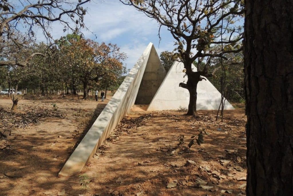 En la Ruta del Peregrino encontrarás a través de 117 kilómetros diversas intervenciones arquitectónicas de autores como Ai Weiwei, Alejandro Aravena y Tatiana Bilbao. De esta última nacen las Majadas, dos estructuras de concreto que se entrelazan para crear una particular forma.